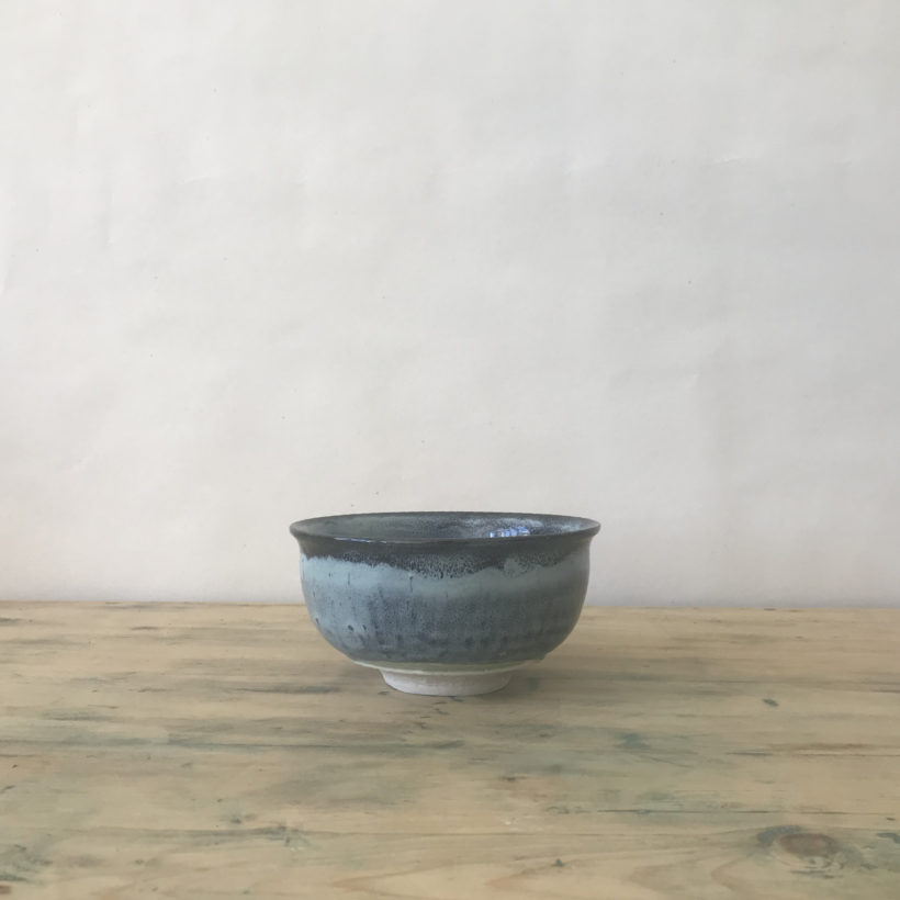 Grand bol désigné par Pierre Casenove à la forme unique en émail bleu gris, aux nuances contrastées, émail travaillé en superposition de couches, au pinceau ou à la louche.