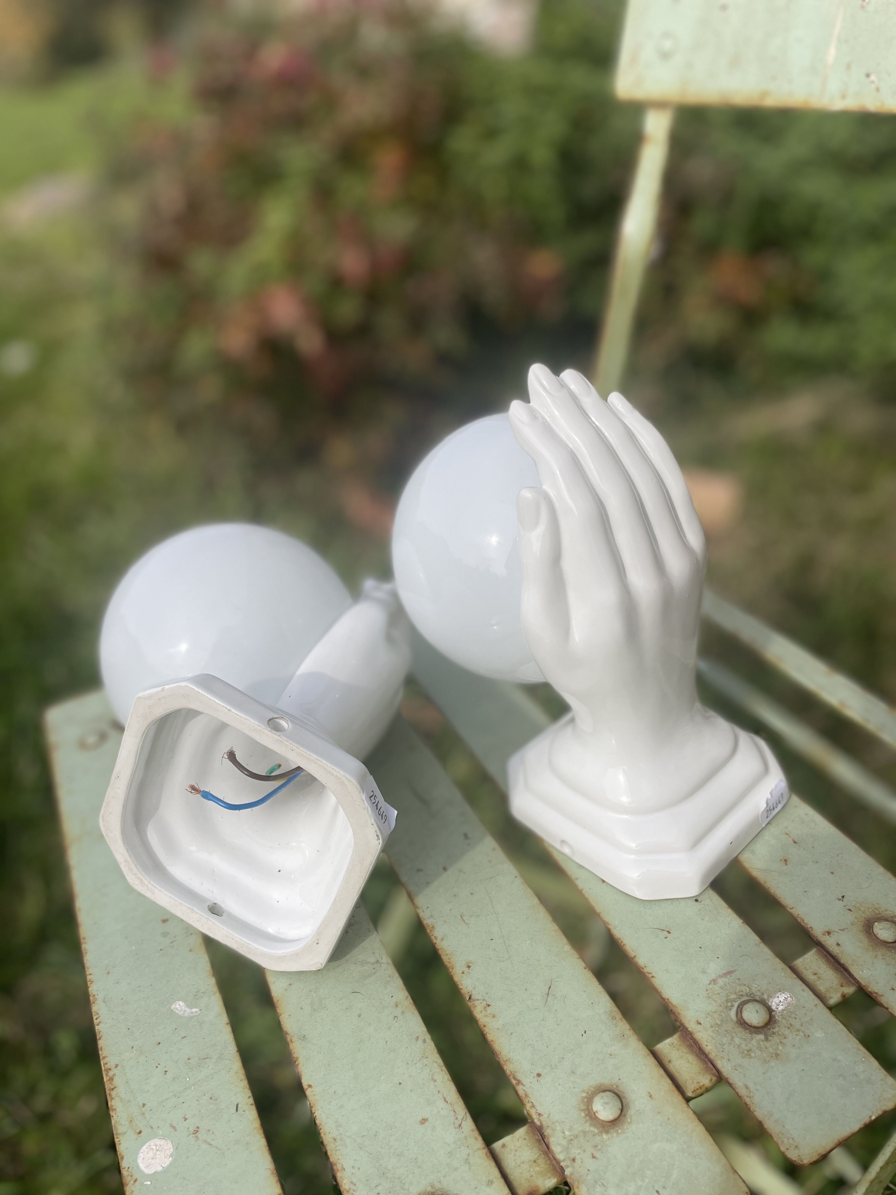 Paire d’appliques vintage en porcelaine blanche et verre opalin.