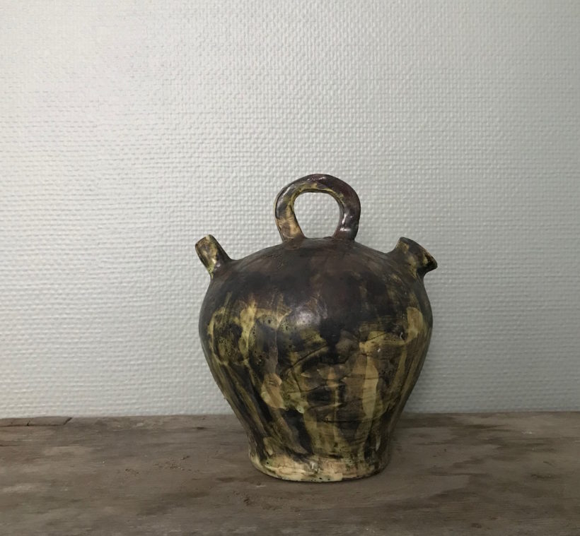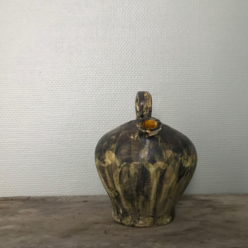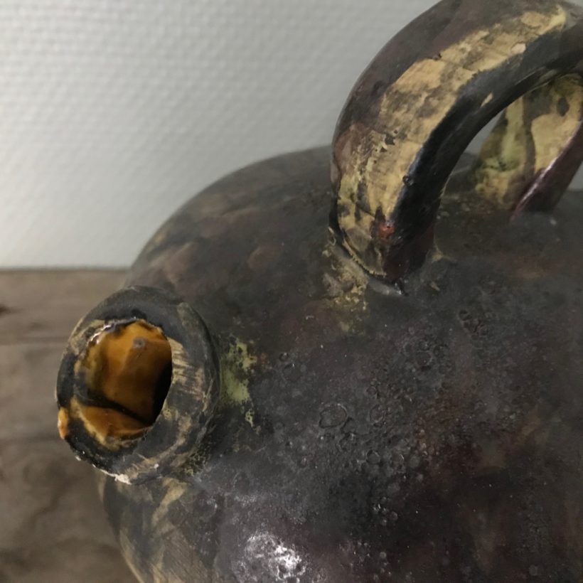 Old pitcher / jar in Anduze enamelled terracotta signed at the base G. Maine de Poulvorel.