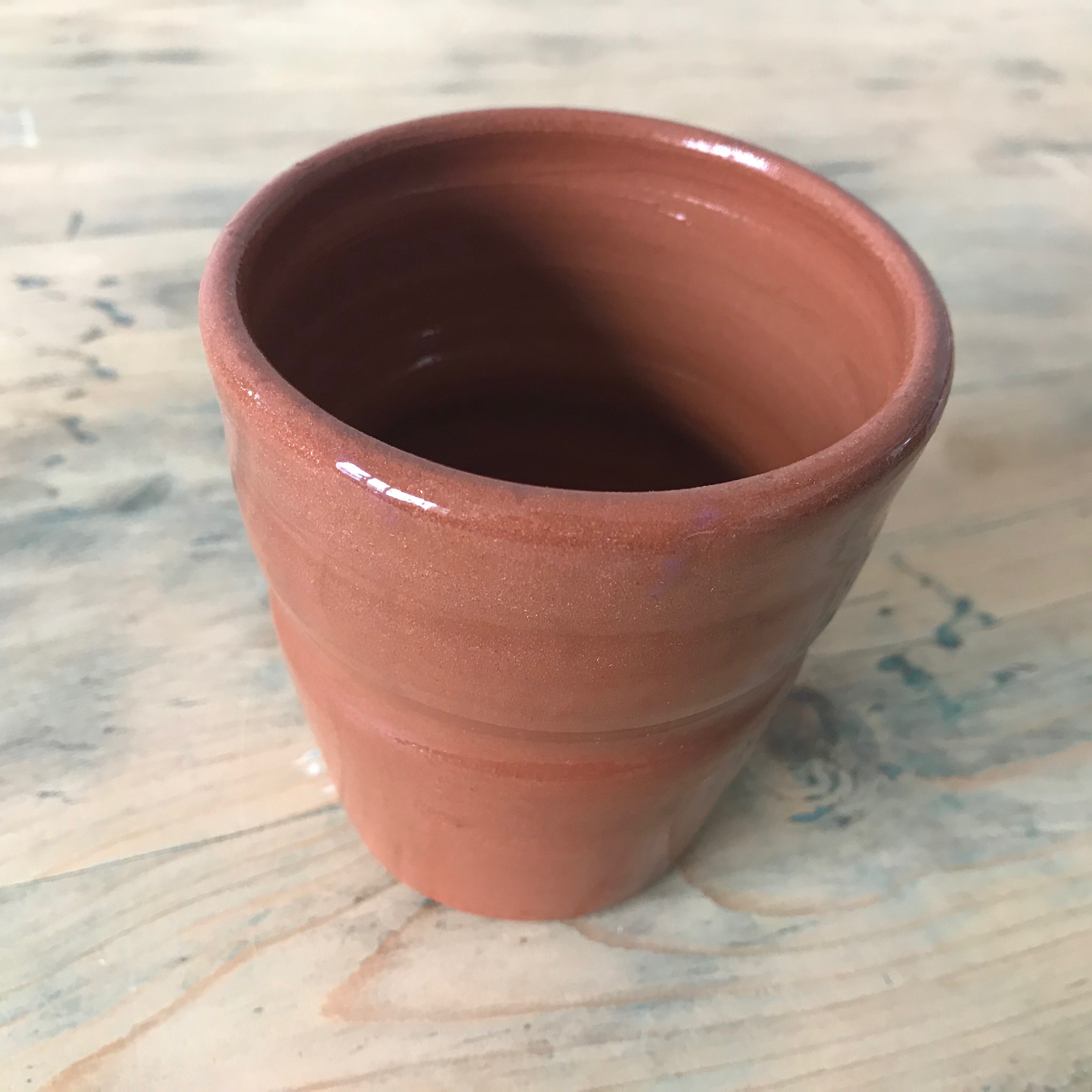 The terracota brings a special fresh avor to the beverages. This cup is part of a collection of traditionally pottery pieces.